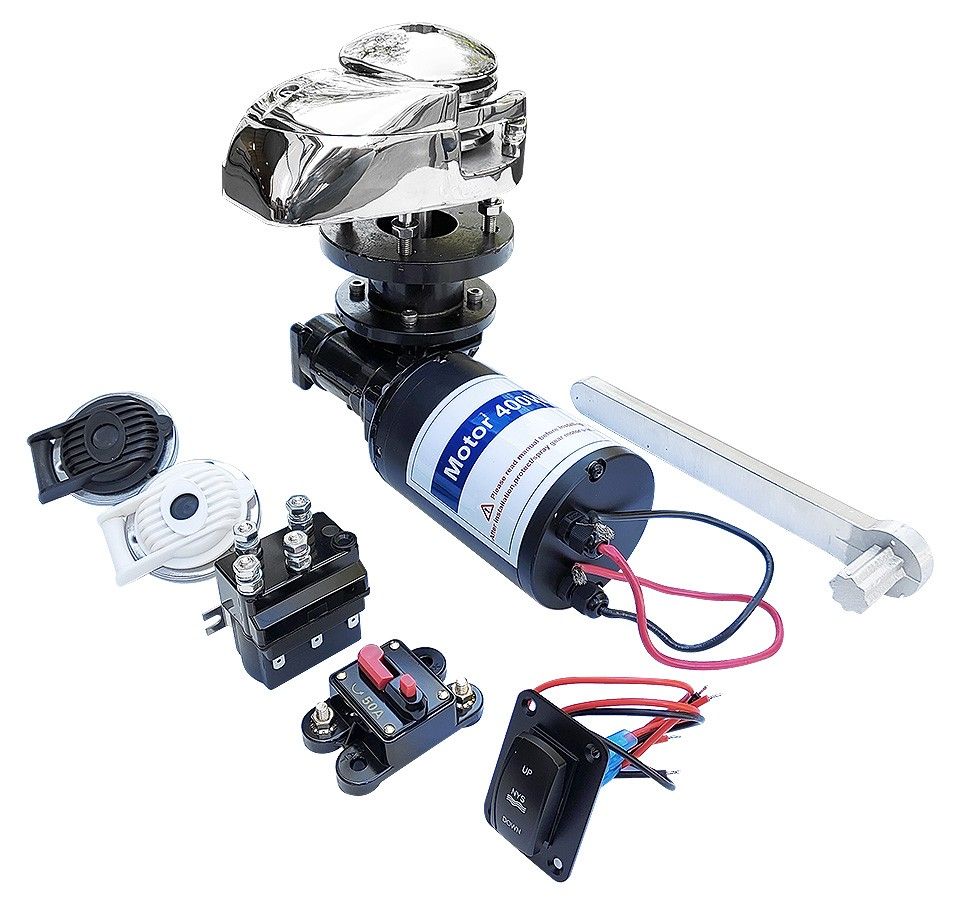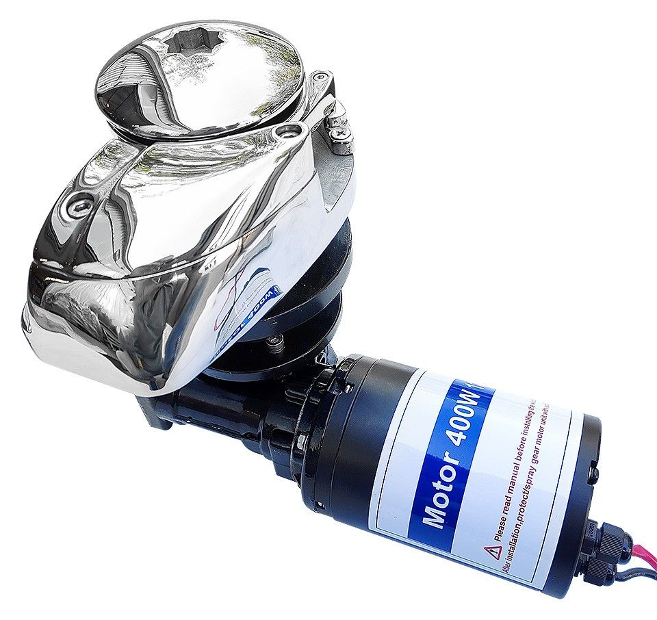 Якорная лебедка, 400 Вт, 12 В (10268957). Якорная лебедка с комбинированной звездочкой (может работать с цепью и тросом). Палубная часть из нержавеющей стали. Хорошая комплектация, цена включает: лебедку, соленоид, автоматический предохранитель, ручной пульт управления, палубные кнопки, ключ для свободного сброса цепи.Напряжение питания: 12 В.Рабочая нагрузка: 125 кг.Максимальная нагрузка: 420 кг.Скорость выборки: 30 м\мин.Калибр цепи: 6-7 мм.Диаметр троса 14-16 мм.Страна-производитель: Китай.
