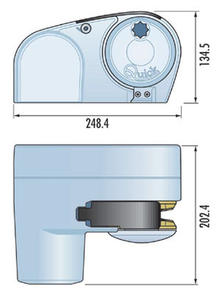 Якорная лебедка "Genius", 500Вт, 12В, цепь 6 мм. (10236156). Возможна поставка лебедок с иным соотношением мощность/калибр цепи.Комбинированная якорная лебедка с горизонтальным валом. Благодаря расположению двигателя в корпусе лебедки, упрощается монтаж и устраняются ограничения на толщину палубы. Лебедка способна работать с цепью, тросом, а также комбинированным якорным концом (цепь + трос). Рекомендуется (в зависимости от мощности) для судов длиной от 6 до 12 метров. Имеет функцию аварийного (свободного) спуска цепи (цепная звездочка освобождается с помощью входящей в комплект поставки рукоятки). Возможность выборки цепи вручную отсутствует. Особенностью данной модели является наличие редуктора патентованной конструкции, имеющего высокий КПД, благодаря чему лебедки "Genius" обеспечивают большую тягу на каждую единицу мощности двигателя, нежели лебедки с традиционным редуктором. Корпус из алюминиевого сплава, цепная звездочка и барабан под трос из хромированной бронзы. Двигатель защищен от действия воды (класс защиты IP67). Лебедка поставляется в двух вариантах — только со звездочкой под цепь (либо под комбинированный конец цепь+трос) или с дополнительным барабаном под трос. В комплект поставки входит реле включения нагрузки (соленоид).Производитель: "Quick", Италия. Установочные размеры лебедок серии Genius GP2 Техническая информация лебедок серии Genius GP2