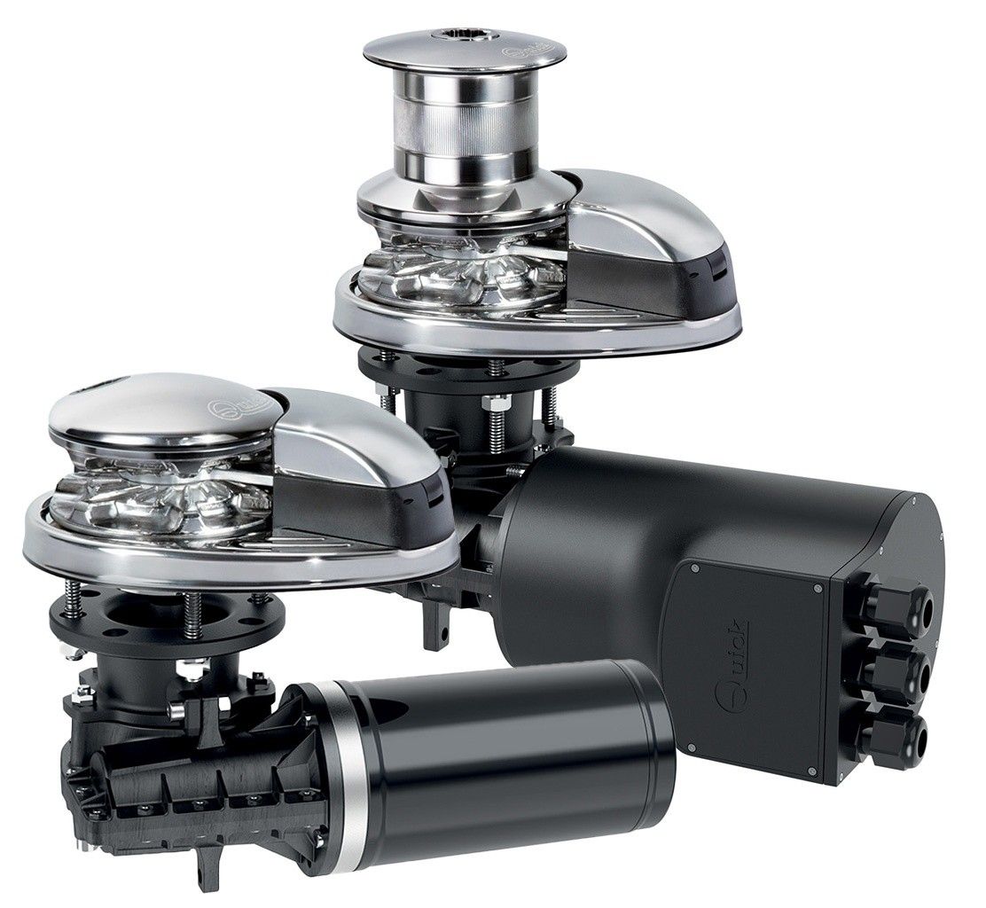 Якорная лебедка "Prince DP2", 500 Вт, 12 В, цепь 6 мм (10252532). Комбинированная якорная лебедка с вертикальным валом. Работает с цепью и синтетическим тросом. Рекомендуется (в зависимости от мощности) для судов длиной от 5 до 15 метров). Имеет функцию аварийного (свободного) спуска цепи (цепная звездочка освобождается с помощью входящей в комплект поставки рукоятки). Возможность выборки цепи вручную отсутствует. Корпус из нержавеющей стали. Двигатель защищен от действия воды (класс защиты IP67). Лебедка поставляется в двух вариантах — только со звездочкой под цепь (либо под комбинированный конец цепь+трос) или с дополнительным барабаном под трос (турачкой). В комплект поставки входит реле включения нагрузки (соленоид).Производитель: "Quick", Италия. Техническая информация лебедок серии DP