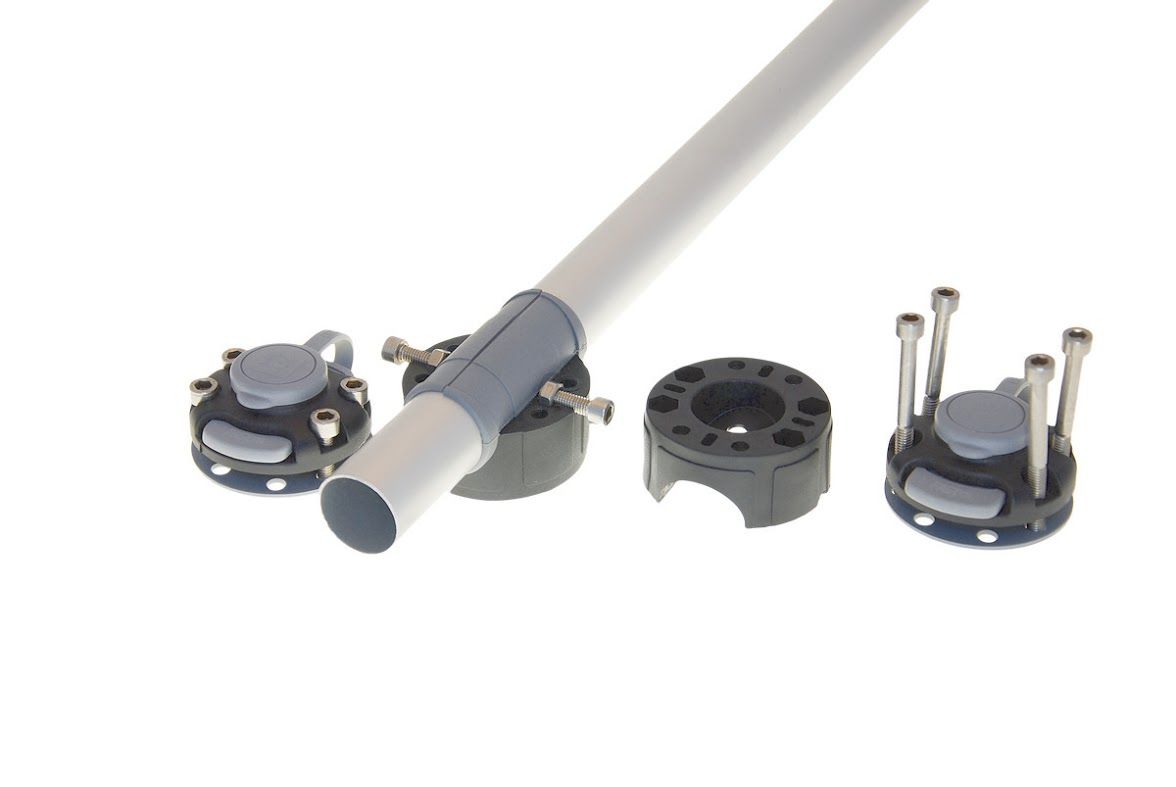 Замки и монтажная площадка для установки на трубу d 30/32 мм FMr232 (10259011). Набор для самостоятельной установки замков на трубу, состоящий из двух замков Fs219 и монтажной площадки Mr232. На одну площадку устанавливаются два замка (по одному с каждого торца площадки). Не требует сверления трубы. Фиксирующие винты позволяют перемещать монтажную площадку вдоль трубы без демонтажа, а при затягивании предотвращают осевое вращение монтажной площадки.Вес: 0,42 кг
