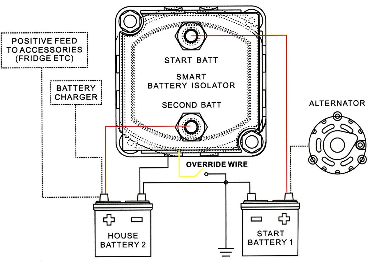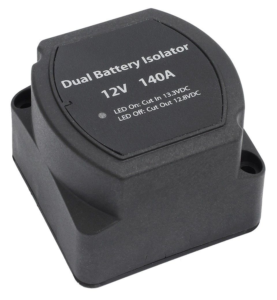 Зарядное реле, 12 В (10264246). Реле, позволяющее заряжать два аккумулятора от одного источника зарядного тока (навесного генератора двигателя, зарядного устройства). После того, как напряжение на основном аккумуляторе после запуска двигателя (или после включения зарядного устройства) достигнет 13,2В, реле подключает к нему параллельно второй аккумулятор, позволяя ему заряжаться одновременно с основным. После остановки двигателя (или после выключения зарядного устройства) и падения напряжения до 12,8В реле разъединяет аккумуляторы, предотвращая бесконтрольное перетекание тока между ними и неконтролируемый разряд. Реле не потребляет ток в режиме холостого хода. В рабочем режиме потребление тока минимально. Важно - реле не вызывает падения напряжения! С помощью нескольких реле при необходимости можно организовать независимую зарядку трех и более аккумуляторов от одного источника тока.
