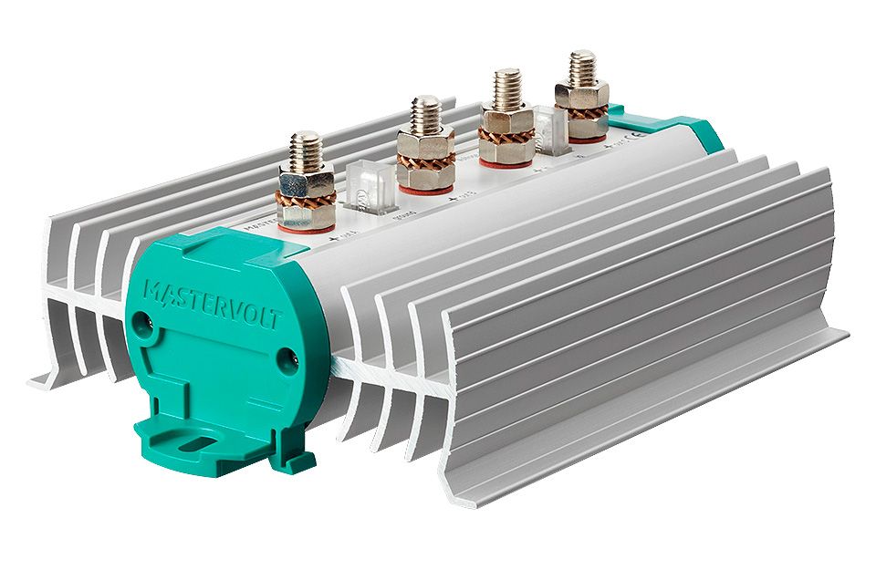 Зарядные изоляторы (делители) для аккумуляторных батарей. Позволяют независимо заряжать 2 или 3 аккумуляторных батареи от одного источника тока. Не допускают перетекания тока между аккумуляторными батареями в отсутствие заряда. В отличие от классических диодных изоляторов, допускающих падение напряжения порядка 0,6 В, имеют минимальное падение напряжения.Максимальный ток, подаваемый на делитель (максимальный ток генератора двигателя): 160, 250 А.Количество выходов: 2, 3.Производитель: "Mastervolt", Нидерланды.