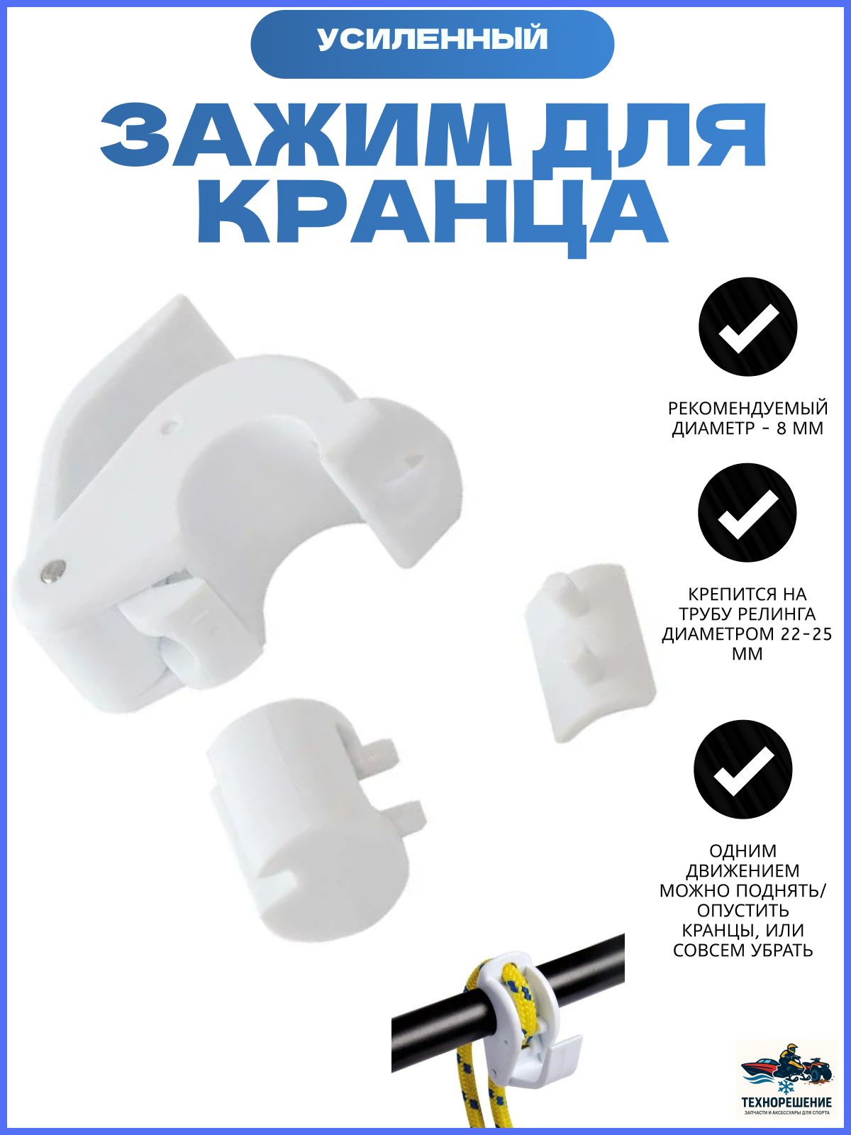Универсальный держатель веревки для кранца предназначен для надежного фиксирования швартовочного кранца на леер или леерный трос. Изготовленный из прочного белого пластика, он обеспечивает безопасное и быстрое крепление без необходимости завязывать узлы.